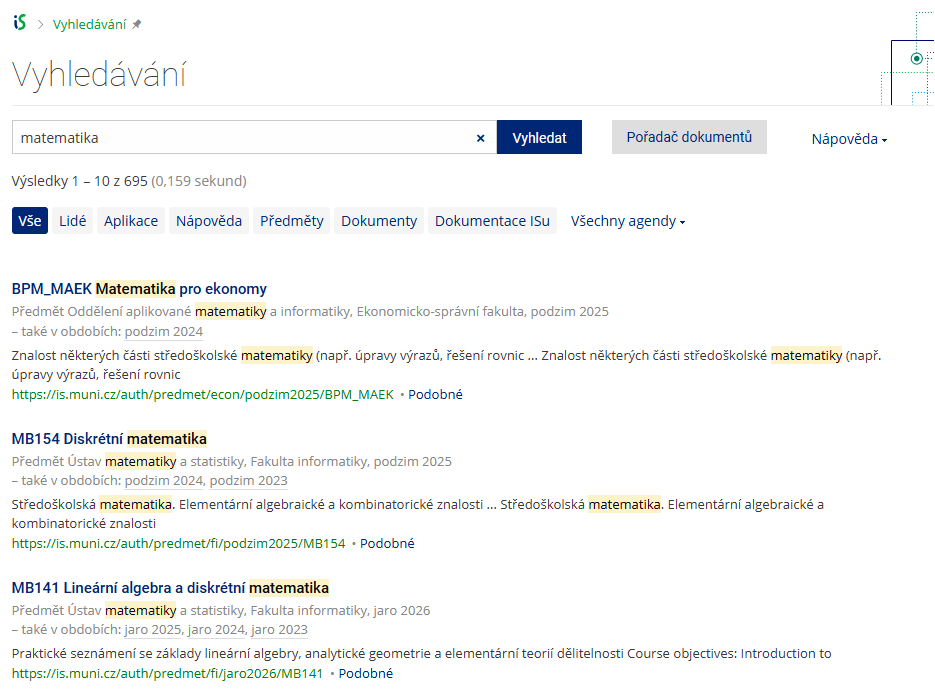 - Odpovědníky – pro zajištění jednotného zobrazení testu pro všechny studenty je aplikace Odpovědníky ponechána ve světlém vzhledu. Všechny aplikace, které zobrazují zadání otázek z odpovědníků jsou také ponechány ve světlém zobrazení (prohlídka odpovědí Odpovědníku, Obtížnost, aj.).